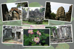 - シェムリアップ州、スラ・スラン, コラージュ画像,寺院,史跡,池・沼・湖,ピンク系の花,青・紫系の花