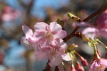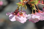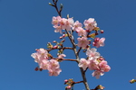 - 福岡市南区・九州がんセンター, ピンク系の花,白系の花,枝,つぼみ,青空