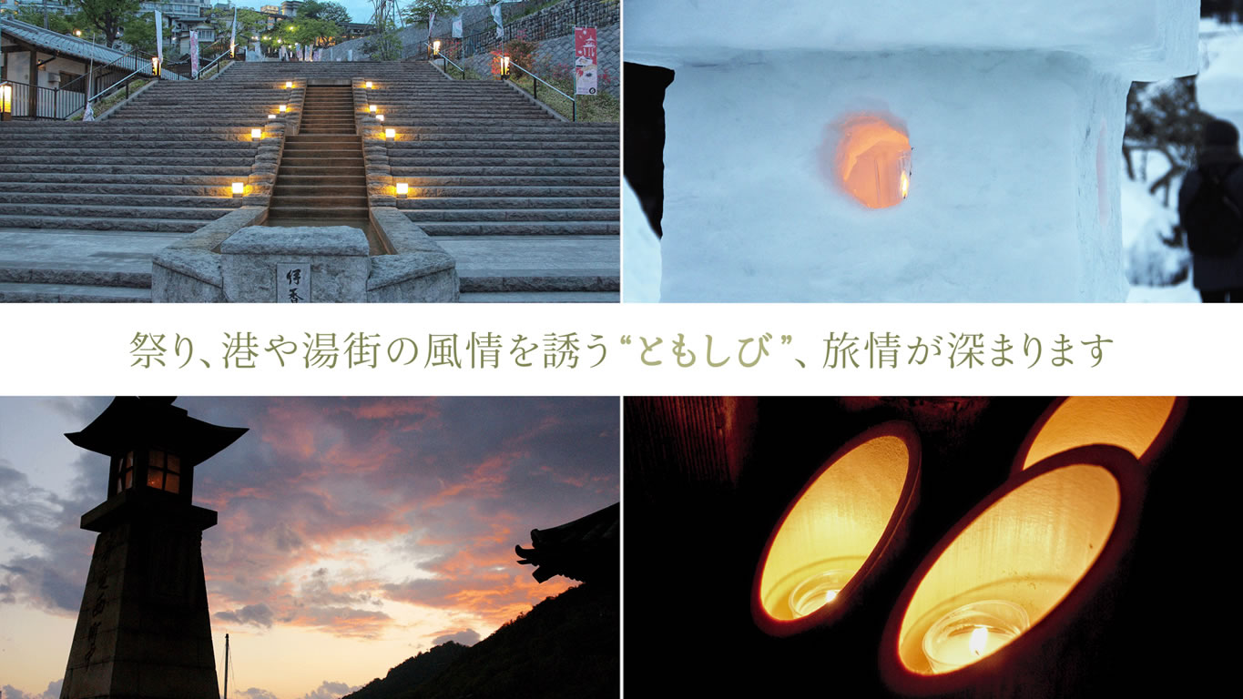 | 祭り、港や湯街の風情を誘う“ともしび”、旅情が深まります | |