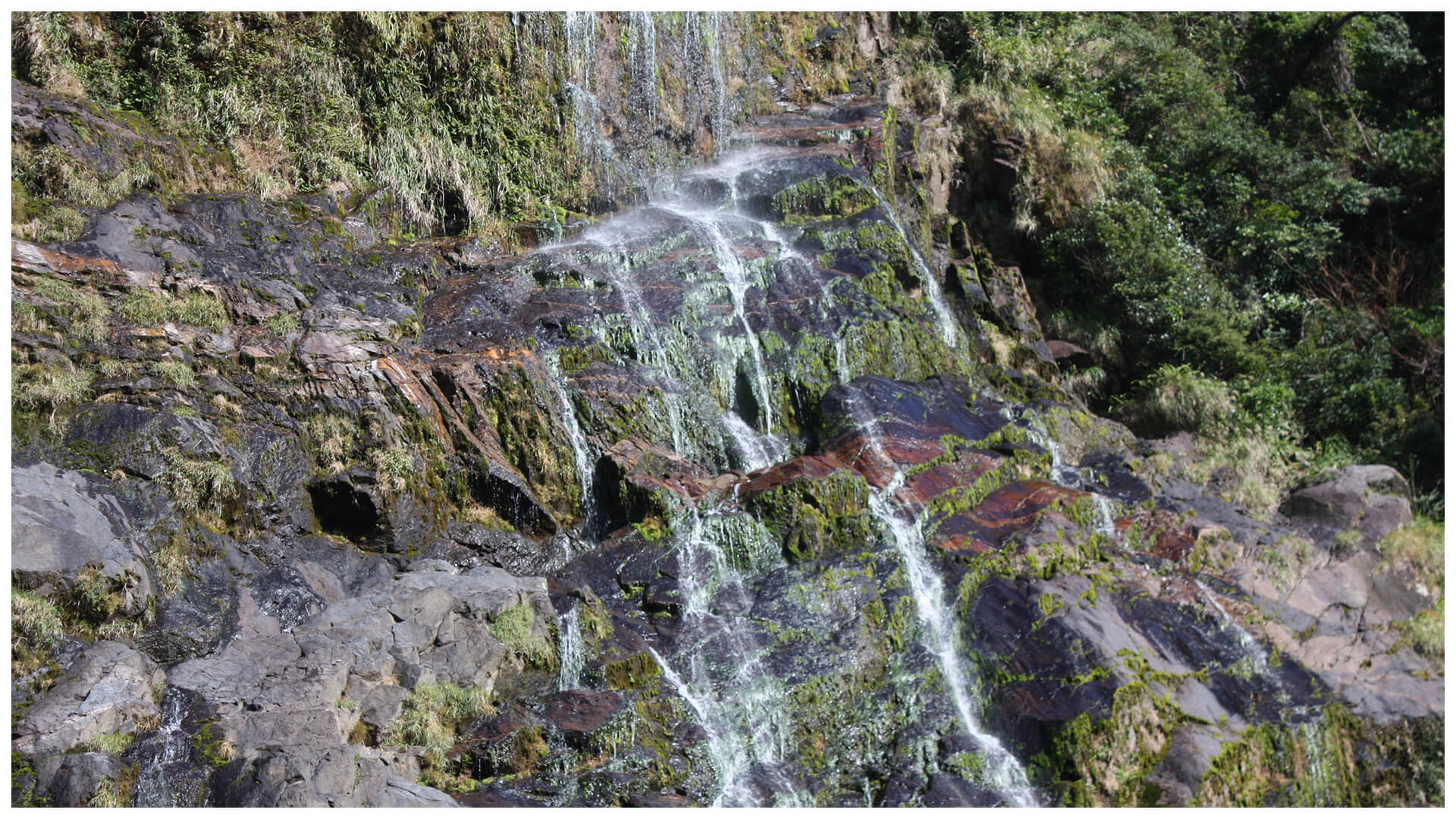 | 滝の飛沫に濡れる苔類